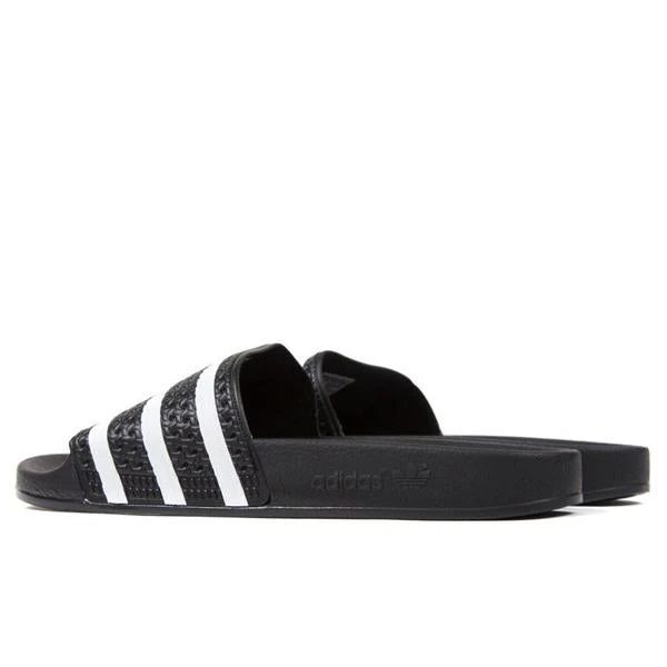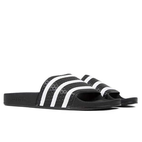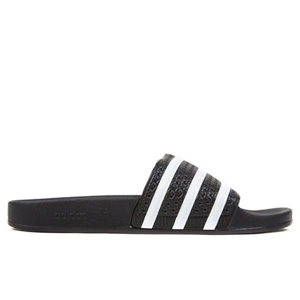 Represent the Adidas brand in its entirety with the Adilette Slides. Built for optimal comfort, the convenient footwear first debuted in 1970 as a shower slide for the German national football team. Featuring a contoured footbed, the design features a slip-on design with synthetic materials. The textile lining appears for a seamless transition and a 3-Stripe across the bandage upper.