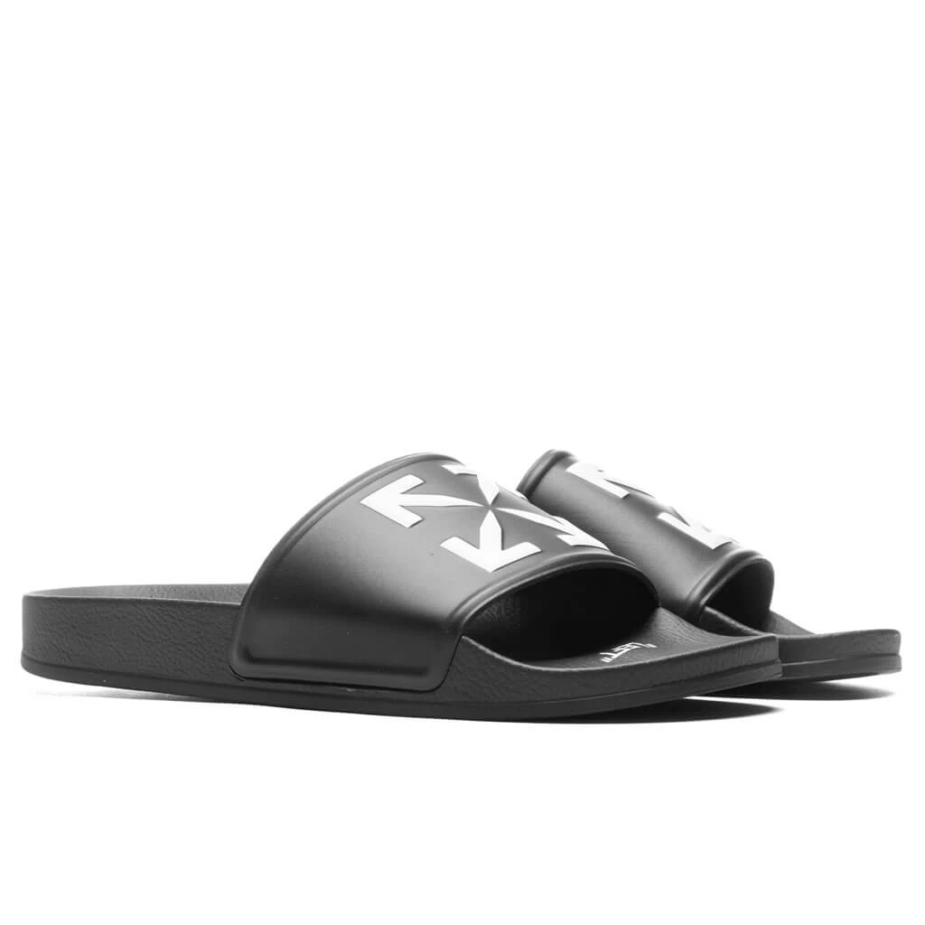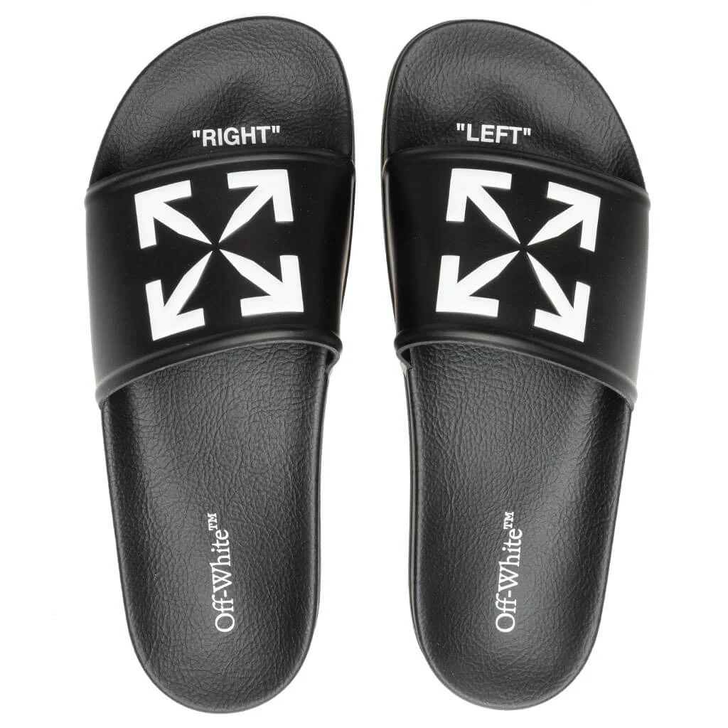 The Arrow Slider is the latest addition to the Off-White footwear repertoire. The slip-on design features a signature Arrows motif at the strap, while printed branding at the footbed makes an additional impression. A rubber outsole underneath offers a durable finish.