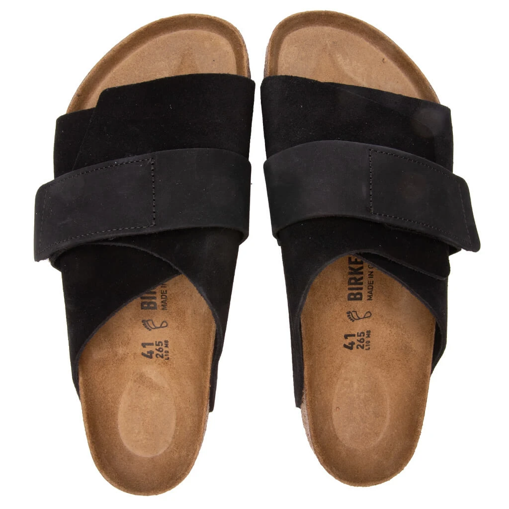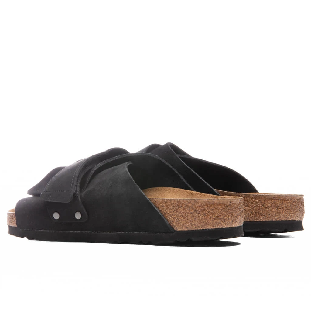 Inspired by the iconic Zürich model, the Birkenstock Wide Kyoto stands out with its compact silhouette. Featuring a suede and nubuck leather upper, the design incorporates a suede lining that provides optimal comfort during all times of wear. The anatomically shaped cork-latex footbed forms to your foot, while the individually adjustable hook and loop closure offer security. The EVA outsole completes the rest of the silhouette.