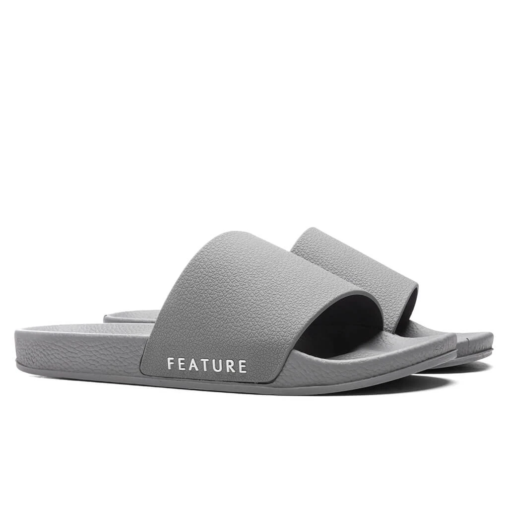 Perfect for lounging by the pool or relaxing at the beach, the exclusive FEATURE Cabana Slides make a statement within any footwear collection. Composed of complete rubber, these single-strapped slides are water-resistant and ideal for all outfit types. Embossed FEATURE branding can be seen at the highly comfortable footbed in addition to the side of the front strap. A bag is included with the FEATURE Cabana Slides, providing you with the opportunity to bring them with you as you please. Optimal durability and traction are provided within the treaded rubber outsole.