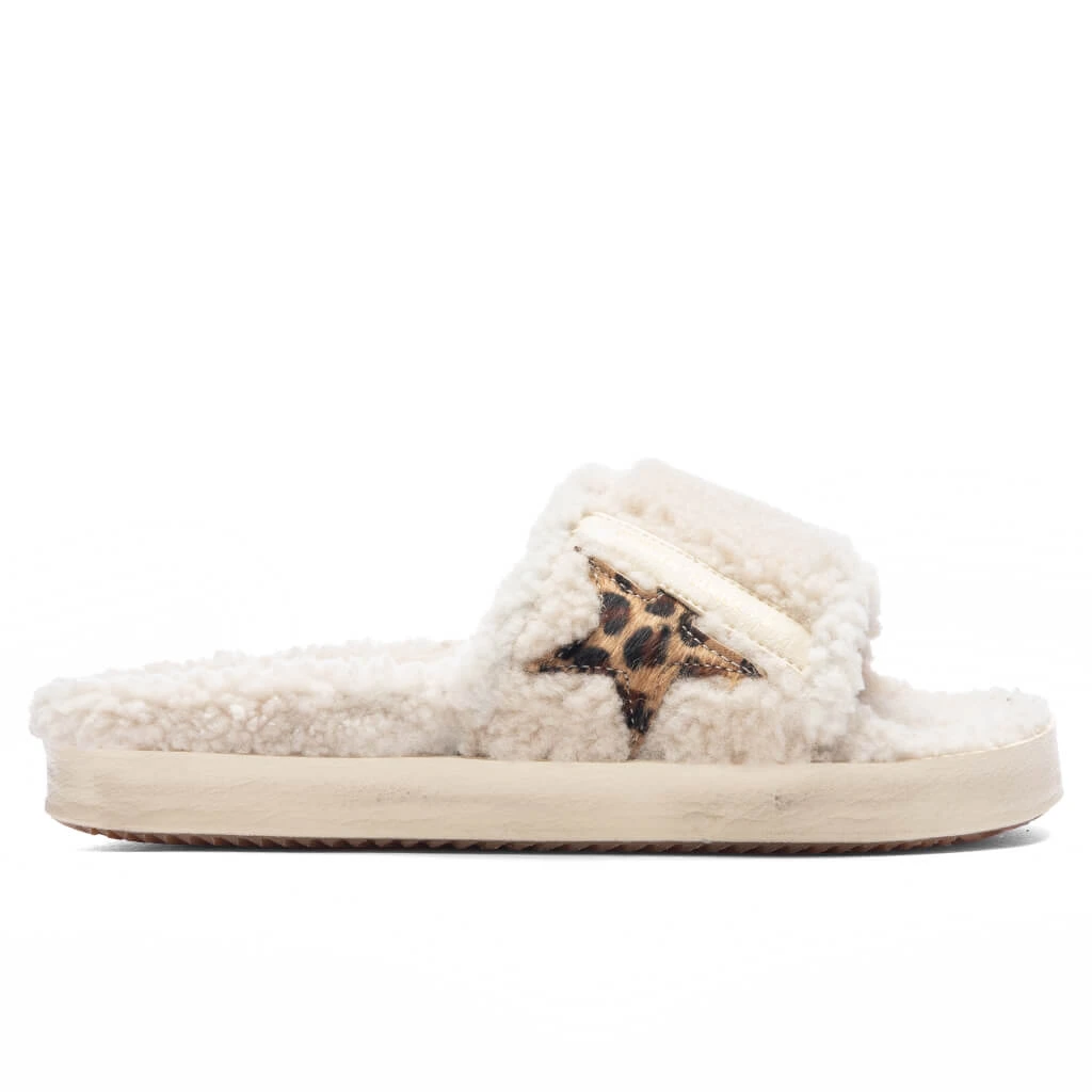 Composed of shearling at the strap and footbed, the Golden Goose Women’s Shearling Poolstar makes an impression. The design features a laminated leather star at the sides, while the leather insert adds optimal comfort. The rubber outsole completes the look.