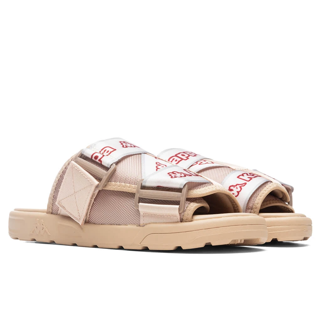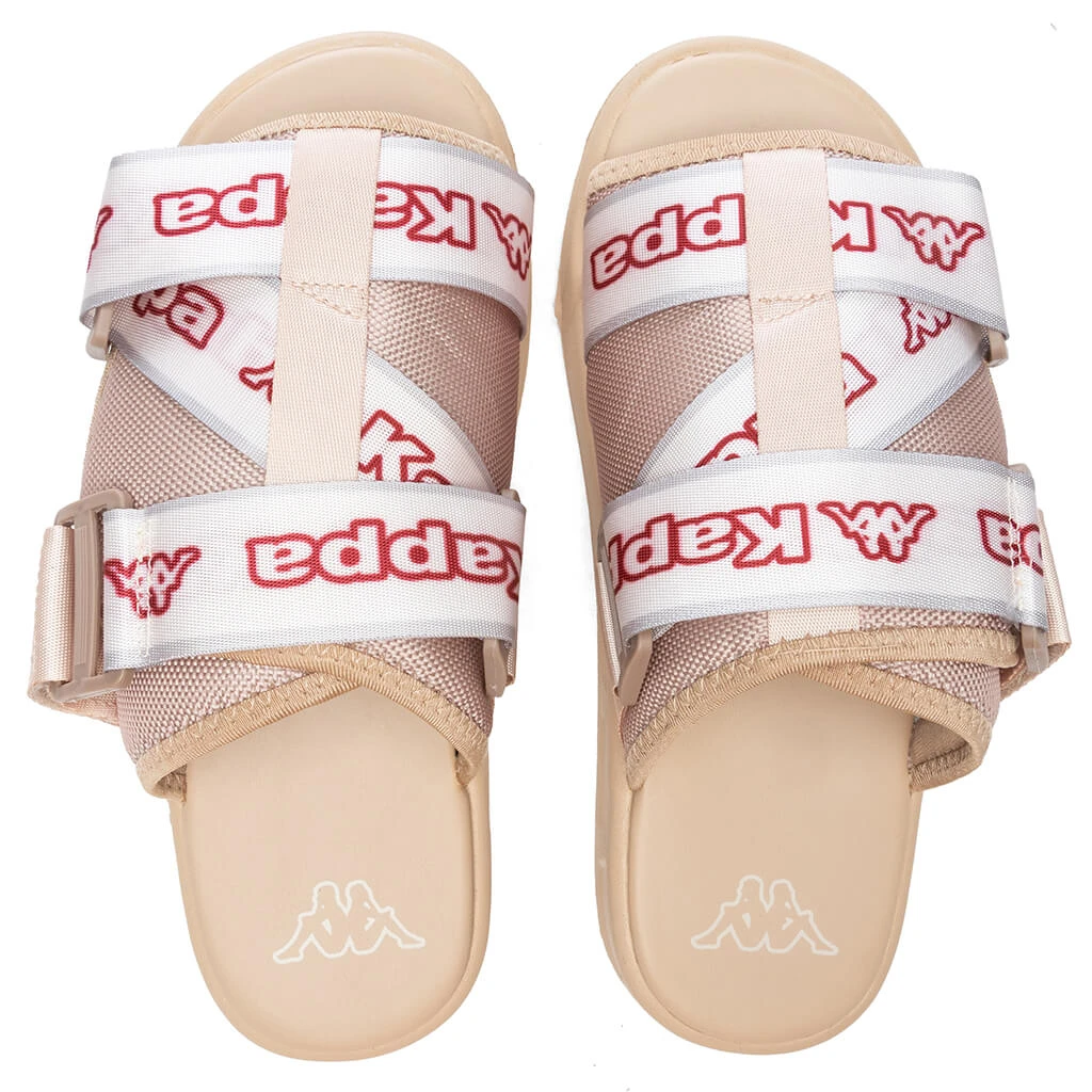 Upgrade your current pair of slides with the Kappa Logo Tape Kalpi Slides. Featuring a nylon upper, synthetic material is placed within the durable outsole. The strap closing features an Omini and Banda logo along with repeating Kappa lettering. An Omini logo also appears at the footbed, completing the overall look.