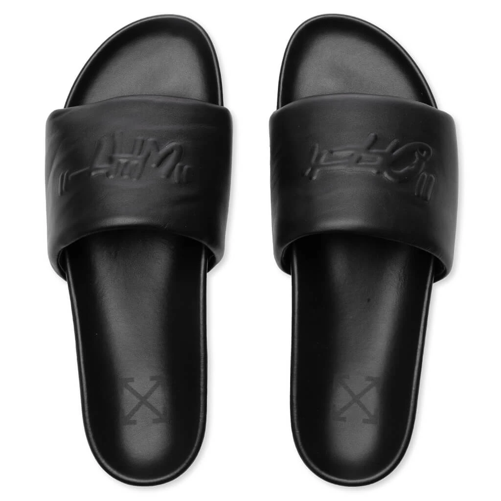 The Off-White c/o Virgil Abloh Leather Slider is a premium footwear offering for any collection. The silhouette is composed of leather and features an embossed logo at the front of the slides. The signature sponge-effect sole finishes the rest of the look.
