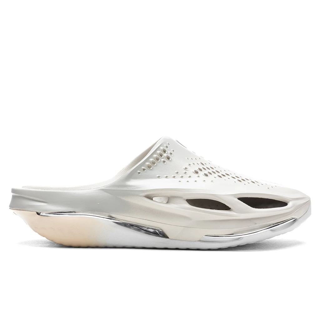 Matthew M. Williams and Nike collide once again in the Nike x Matthew M. Williams 005 Slide ‘Light Bone.’ Composed of lightweight foam in the slip-on upper, the design is treated with breathable perforations and large drainage ports on the other side. The branding is limited to a signature Swoosh and embossed MMW branding at the vamp. A double-stacked foam midsole makes an appearance for added comfort along with the rigid shank plate that is embedded between the two layers.