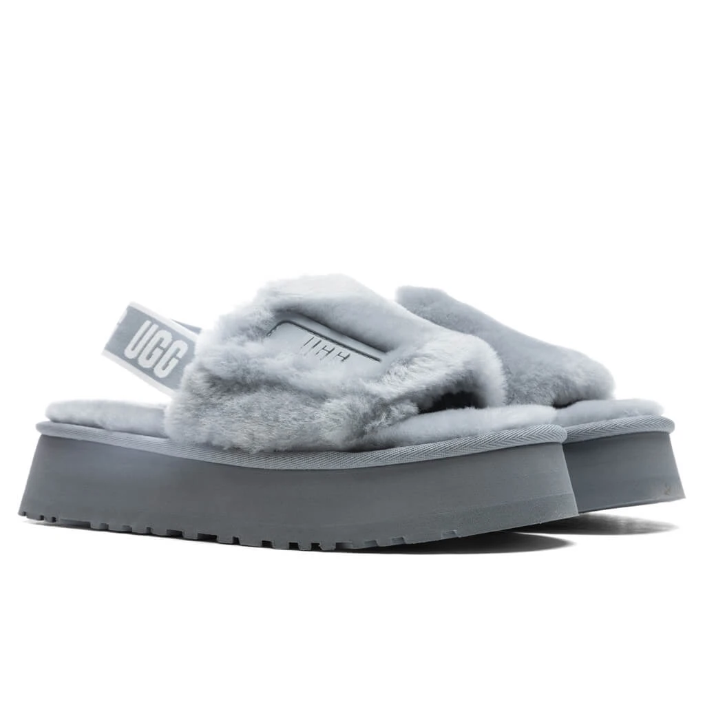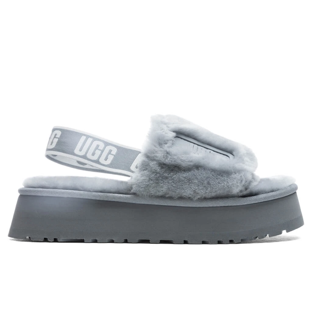 The UGG Women’s Disco Slide features a sheepskin upper for optimal comfort, while the webbing vamp strap and metal buckle provide security to the construction. A sheepskin insole is placed while the graphic molded EVA outsole offers optimal durability and traction. The woven label at the insole completes the design.